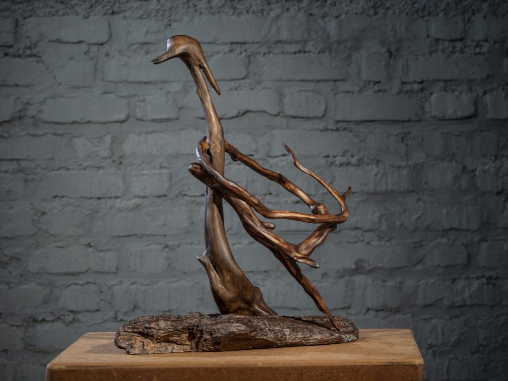 This piece belongs to the “Wooden Fossils” collection, works that reflect the artist’s imagination of beings that, through the process of evolution and natural selection, have been removed from the circle of life. It is as if these beings once existed, or could have existed.