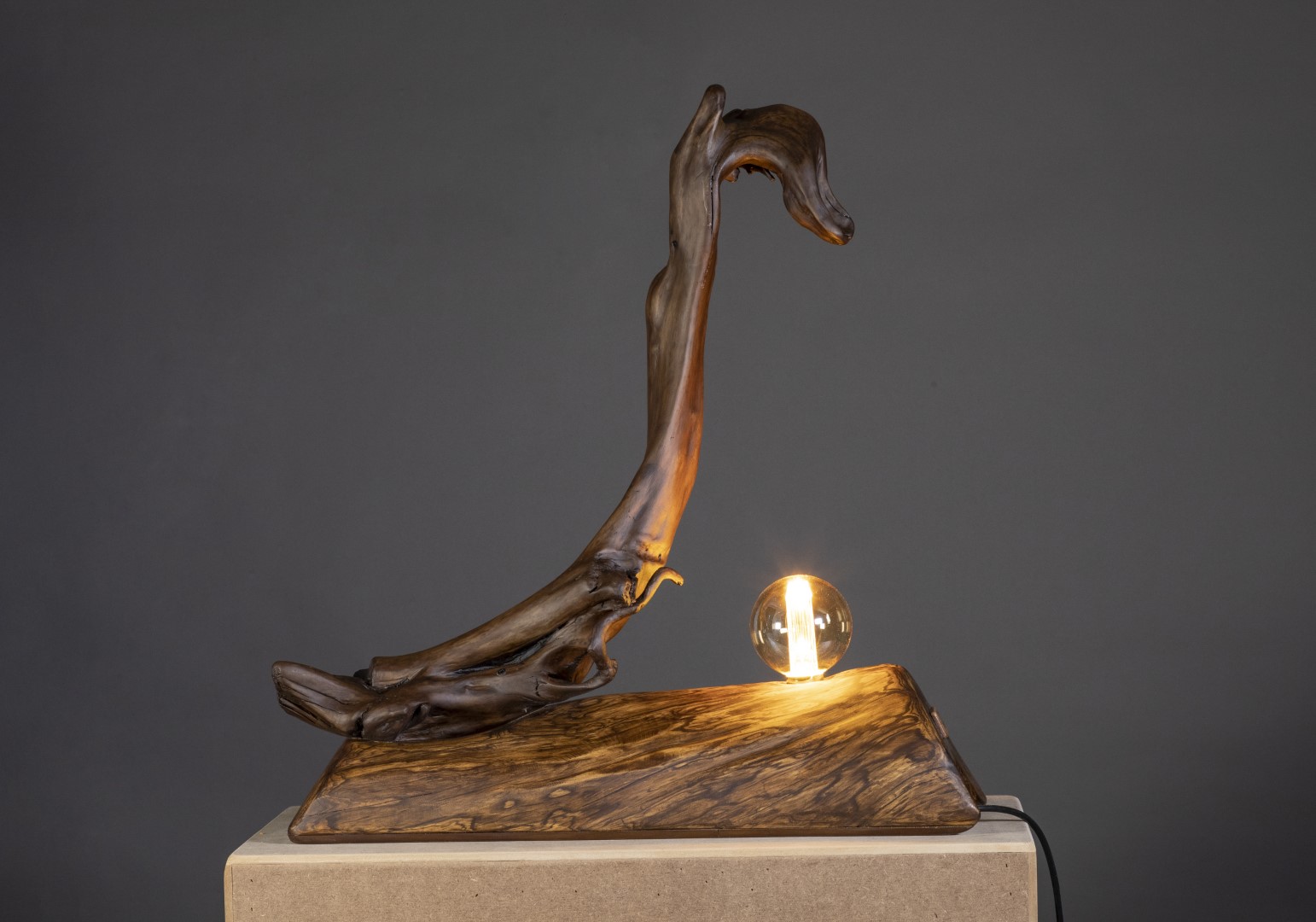 Materials: Driftwood, pine wood, shellac varnish, sealer, and matte finish